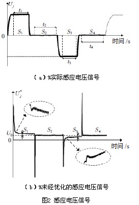 圖2中(a),(b)對(duì)比了實(shí)際測(cè)量的感應(yīng)電壓信號(hào)Uj與電路未經(jīng)優(yōu)化時(shí)取得的電壓U*j,很明顯看出:設(shè)計(jì)合宜的信號(hào)處理電路可以大幅度改善感應(yīng)電壓信號(hào)的質(zhì)量,保證電壓幅值始終控制在A/D采樣范圍內(nèi),并提供更長(zhǎng)的有效采樣時(shí)間,從而提高電磁流量計(jì)的測(cè)量精度。