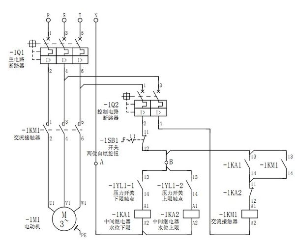 這個很簡單,我建議你把220v的中間繼電器換成直流12V的小型繼電器,這樣電接點壓力表觸點更耐用點。這個是你需要的圖,如果中間繼電器改為12V小繼電器控制 直接把圖紙A B兩點斷開,串上一個220V的變壓器就可以了。 (樓下的朋友,誰說控制電路沒有380V的,現(xiàn)在大多數(shù)都是220V和380V控制??春脝栴},“求380v交流接觸器和兩個220v中間繼電器電接點壓力表自動控制水泵實物接線圖”是380V接觸器)沒看明白就不要說。
