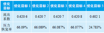 表 不同優(yōu)化目標下的不同流出系數(shù)和壓力恢復率