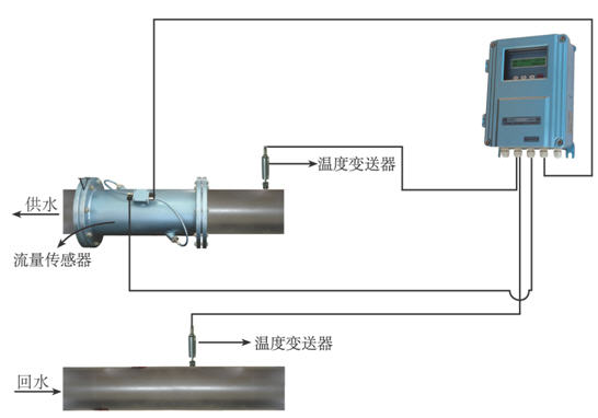 其次另外一種就是管段式超聲波熱量表,相對(duì)于上面的那種安裝要復(fù)雜一些,因?yàn)橐虚_(kāi)管道把我們流量傳感器安裝上去,大家可以看圖。