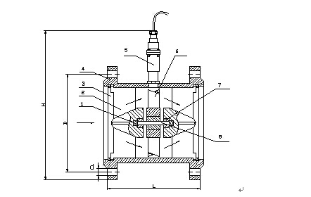 1. 過濾器 2.前直管段 3.葉輪 4.前置放大器 5.殼體 6.后直管段