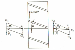 因流體流速的軸向分量沒有變化,有:u1=u2sinα2