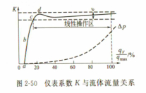 儀表系數(shù)K。根據(jù)上述,繪制如圖所示儀表系數(shù)與流體流量之間的關(guān)系曲線。