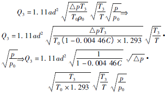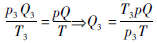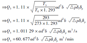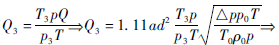 設(shè):p3、Q3、T3為常溫狀態(tài)(一個(gè)標(biāo)準(zhǔn)大氣壓,20℃)下的壓力、體積、溫度;則:p3=p0=101325Pa;T3=273+20=293K。