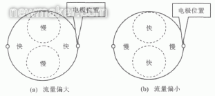 理想流場分布應該呈軸對稱,中心稍大、四周稍慢,這時采用電磁流量計所測量的流量準確且穩(wěn)定(漿料噪聲的影響除外)。如果流場不夠理想,則測量管橫截面流速分布不均,可能引起流量測量輸出波動。