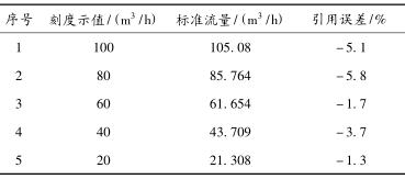 (1)把轉(zhuǎn)子流量計按玻璃管上的刻度示值做一遍檢定,得到如表1所示數(shù)據(jù),從中可以看出刻度示值為“100”和“80”時的引用誤差非常大,已經(jīng)無法正常使用(JJG257—2007《浮子流量計檢定規(guī)程》中規(guī)定引用誤差最大為5%)。