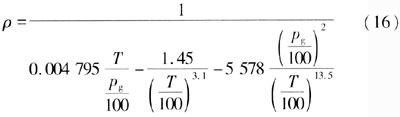 過熱蒸汽不同于理想氣體,不能通過理想氣體狀態(tài)方程來計算其密度,只能用以溫度和壓力為自變量的近似公式來計算其密度。式(16)是過熱蒸汽密度計算式之一[9]41。