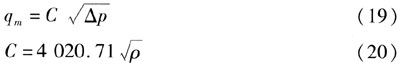 將溫度(20℃)換算成熱力學(xué)溫度(293.15K)代入式(3),流量公式為: