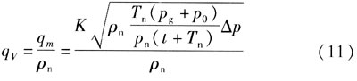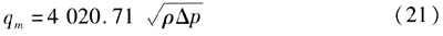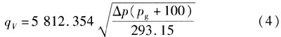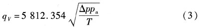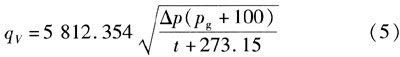 將數(shù)據(jù)qV=3000m3/h,ρn=1.293kg/m3,L=273.15K,pg=5kPa,p0=100kPa,pn=101.32kPa,t=20℃,△p=0.74377kPa代入式(12),可求得:K=4025.3021。