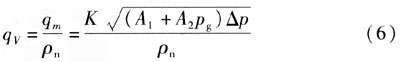 將數(shù)據(jù)qV=3000m3/h,ρn=1.293kg/m3,A1=1.189,A2=0.0119,pg=5kPa,△p=0.7437 kPa代入式(10),可求得:K=4025.5293。