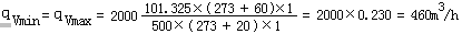 式中 qVn,qV--分別為標準狀態(tài)下(0oC或20oC,101.325kPa)和工況下的體積流量,m3/h;
