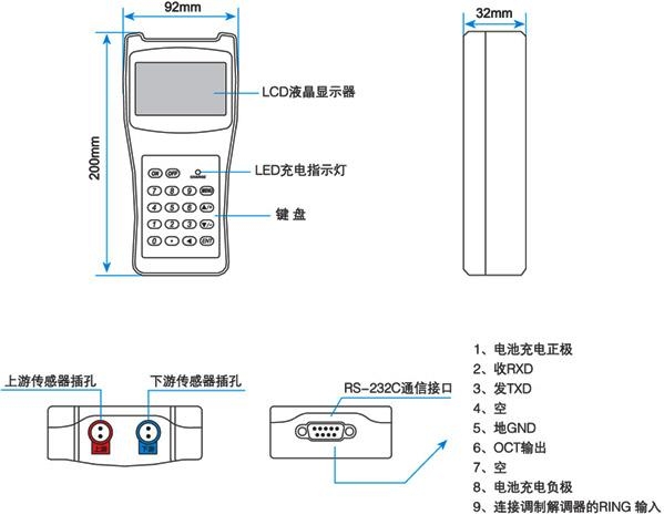 ※ 采用智能充電方式,直接接入AC220V,充足后自動(dòng)停止,顯示綠燈