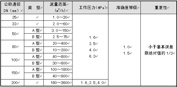 2.1流量計(jì)規(guī)格、基本參數(shù)和性能指標(biāo)(見(jiàn)表1)