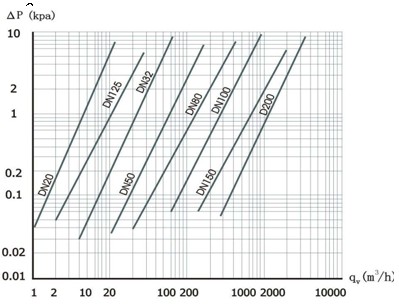 ΔP ¬——介質(zhì)為干空氣時(shí)流量計(jì)的壓力損失(KPa),其特性曲線見(jiàn)下圖
