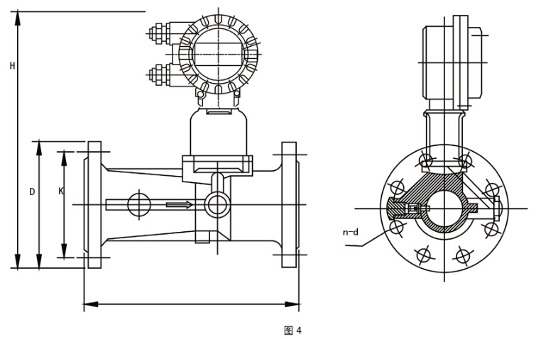 1、流量計(jì)外形尺寸(見圖4和表2)